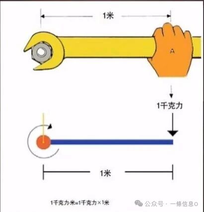 力对某一点的力矩的大小为该点到力的作用线所引垂线的长度,也就是力臂再乘以力的大小。其方向则垂直于垂线和力所构成的平面,用力矩的右手螺旋法则来确定,力对某一轴线力矩的大小等于力对轴上任意点的力矩在轴线上的投影。国际单位制中力矩的单位是牛顿米。通常我们习惯上称呼的力矩用几牛,其实这个单位就是牛米。拿我们常用扳手拧紧螺栓来说,如果我们对扳手施加的力是垂直于扳手的,那么这时我们所说的螺栓的拧紧力矩就是手与扳手的力的作用点到螺栓轴心线的距离与手的作用力的乘积。因此我们可以得出以下结论,要想使螺栓达到一定的拧紧力矩,那么抓住扳手的手越靠近扳手的尾部,那么需要用到的力气就越小,越远离扳手的尾部,那么需要用到的力气就越大。